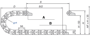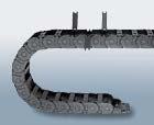In this version, special plastic glide shoes are fitted to the sides of the e-chain® links every 1,000 to 2,000mm. These glide shoes resemble the leeboards used on sailing boats. The leeboards pivot upwards when they make contact with land and enable the continuation of travel. Similarly, the glide shoes in AUTOGLIDE go up and down, each according to its position on the lower or upper run of the chain. They provide the precise lateralguidance and a smooth gliding of the e-chain®.