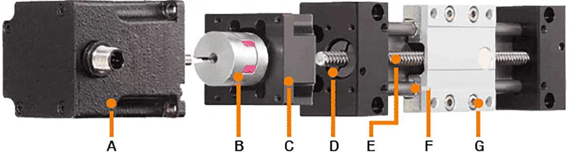 C = Motor flange: connection for stepper motors