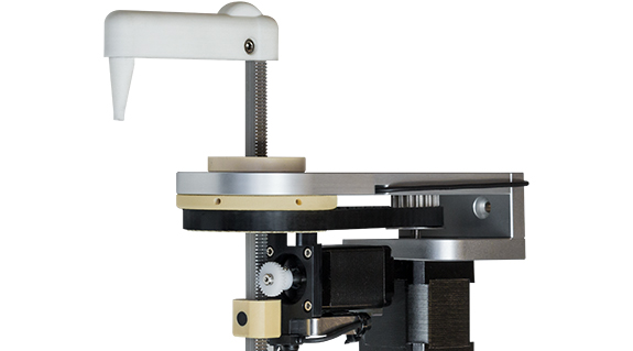 drylin® - lift/swivel unit, based on a rack and pinion drive with coated aluminium 4-edge profile as well as a round table element with integrated toothing