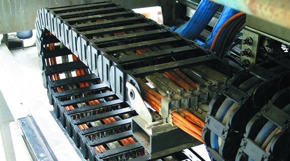 Low-maintenance cable guidance in CNC grinding machines, encountering oil and chips