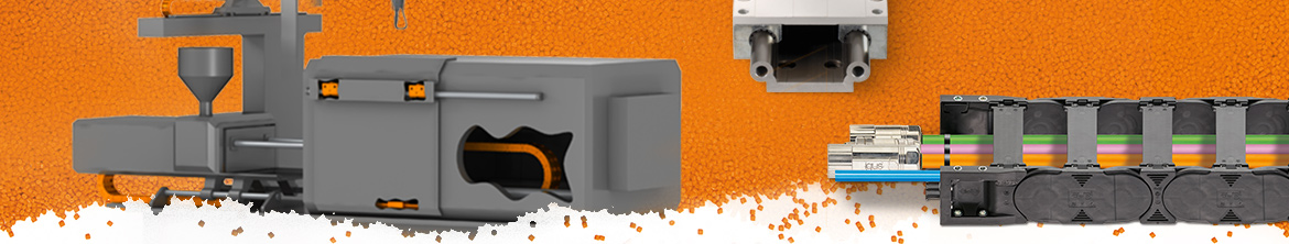 The e-chain® was placed on an injection moulding tool in such a way that additional space is not necessary for the rolling movement in the horizontal direction.