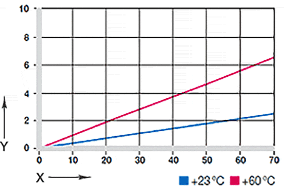 With increasing temperatures, the compressive strength of iglidur® A290 plain bearings decreases. Fig. 02 clarifies this connection. The temperatures prevailing in the bearing system also have an influence on the bearing wear. The wear increases with rising temperatures, and the influence is especially marked from 120°C temperature onwards. An additional securing is recommended at temperatures higher than +110°C.