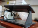 Polymer rod end bearing in a smoke extraction system at a meat factory.