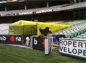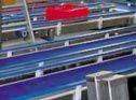 This gate, which can be opened and closed automatically, is used in sport stadiums and is folded like an accordion.
