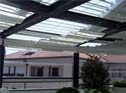 With this system, for example, terraces can be roofed flexibly. The roof is even waterproof in the closed state.